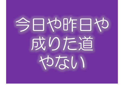 この道というは、今日や昨日や成りた道やない。皆心という、いつと無くして通りたこそ今日の日、めん/\もなあ、これまで心で思わいでも神が見通し、よく聞き分け。これまで通り難くい運び難くい道通りた理は、容易で通られたんやない。(明治30年8月11日)
